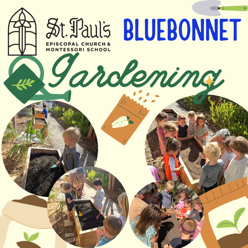 Our Primary Bluebonnet Community is enjoying the beautiful outdoors! Taking care of our garden and learning about how important nature is! Enjoy these photos below! #montessori #stpaulsepiscopalmontessorischool #gardening #primary #bluebonnet #learning #nature #outdoors